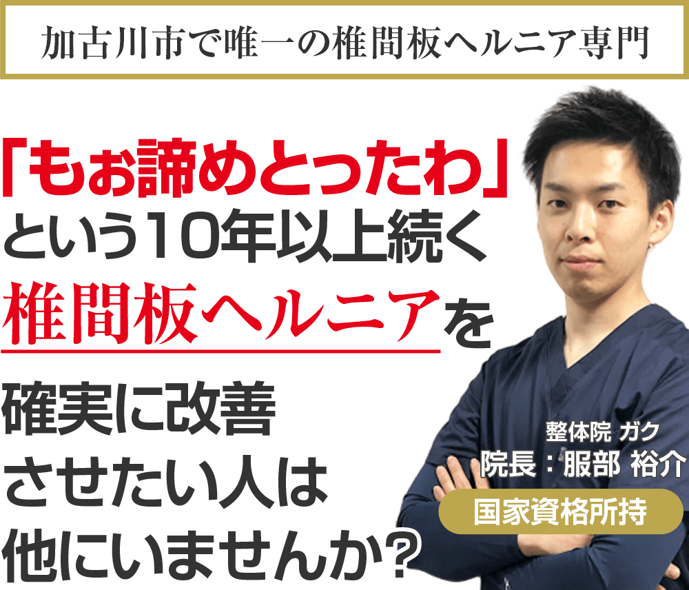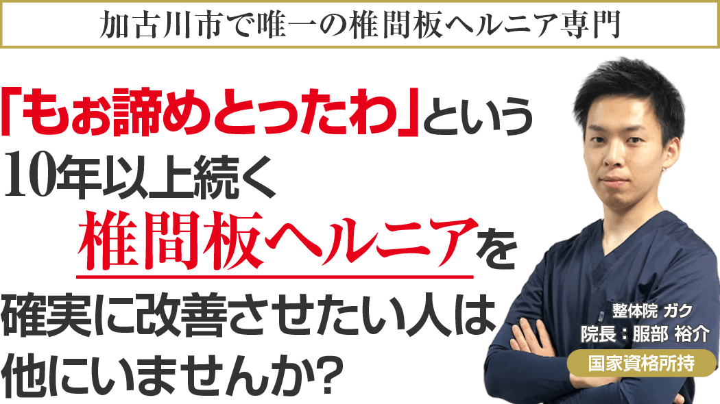 国家資格を保持し、ドクターからも信頼される医学的な考察と全国で治療家向けセミナー講師をする程の技術を持ち、あなたのことを本気で考える加古川市で唯一の椎間板ヘルニア専門整体院ガクに来院し、もう二度とその痛みに我慢することのない人生を手に入れる道。