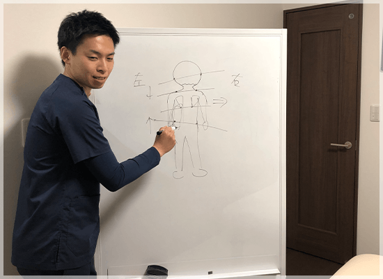 筋肉など身体のことを詳しく教えてくれるから、筋がどこを通ってるのか初めて知ったね。あとは、普通のところと違って電気とかじゃなく、先生の手で触ってやってくれるから緩める感覚とか痛みの場所とかわかるんやと思うね。