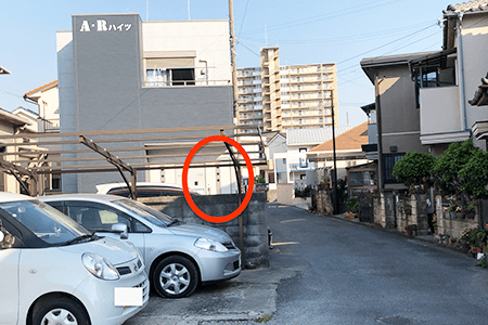 治療院が入るハイツ前に駐車場がございます。駐車場前の道路がやや狭いので普通車で運転に自信がない方はお近くのコインパーキングをご利用下さい。