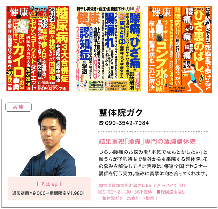 全国発行の「健康」に「結果重視『腰痛』専門の凄腕整体院!」として掲載されました!