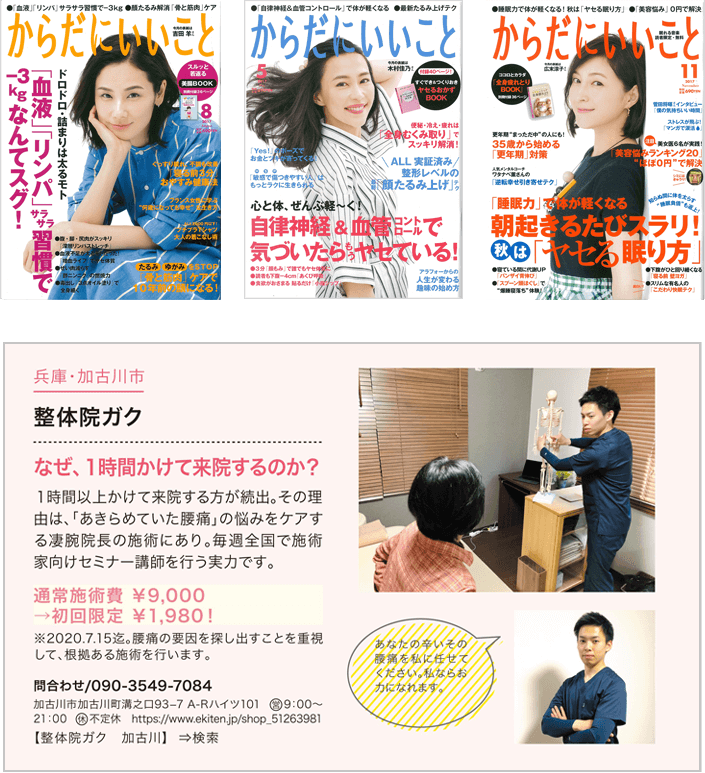 全国発行の雑誌に「全国発行の雑誌が認める優良・凄腕整体院!」として掲載されました!<
